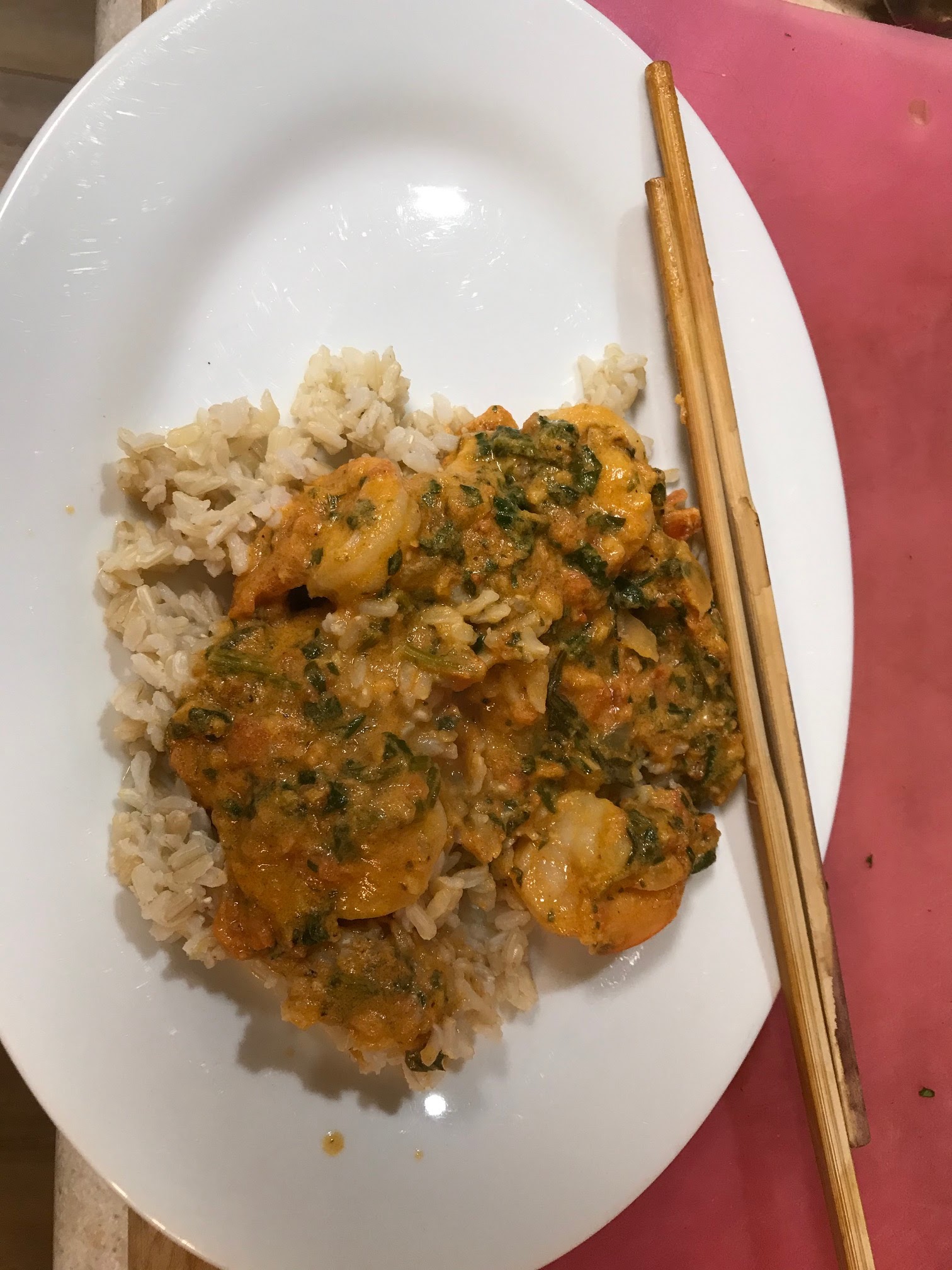 Cook until spinach is reduced (If shrimp is raw, add them now and cook for several minutes while spinach is being reduced).